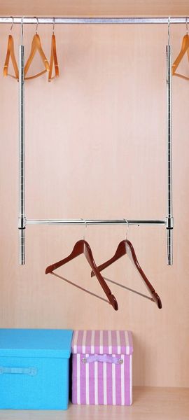 HOME-IT DOUBLE HANGING CLOTHES RACK CHROME ADJUSTABLE HANGING CLOSET ORGANIZER, CLOTHES HANGING RACK