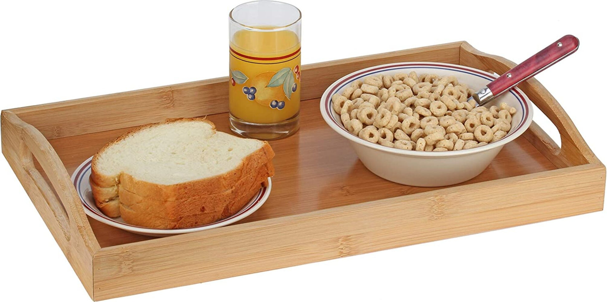 Add an elegant touch of bamboo style to your home interior with this classy serving tray.This tray can be used either as a server or a decoration holder. Whether it's breakfast, appetizers, or wine glasses, spoil your guests by serving them with this platter. Or, show off your favorite candles, keepsakes, and more on its smooth surface. Bring sophisticated bamboo design to your life with this convenient and stylish serving tray.